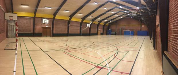 Du booker en bane til basketball, kurvene kan sænkes og du skal selv medbringe en basketbold. Der er omklædningsrum og bad til rådighed. Når din booking er gennemført modtager du en mail med praktisk information omkring adgang til salen.